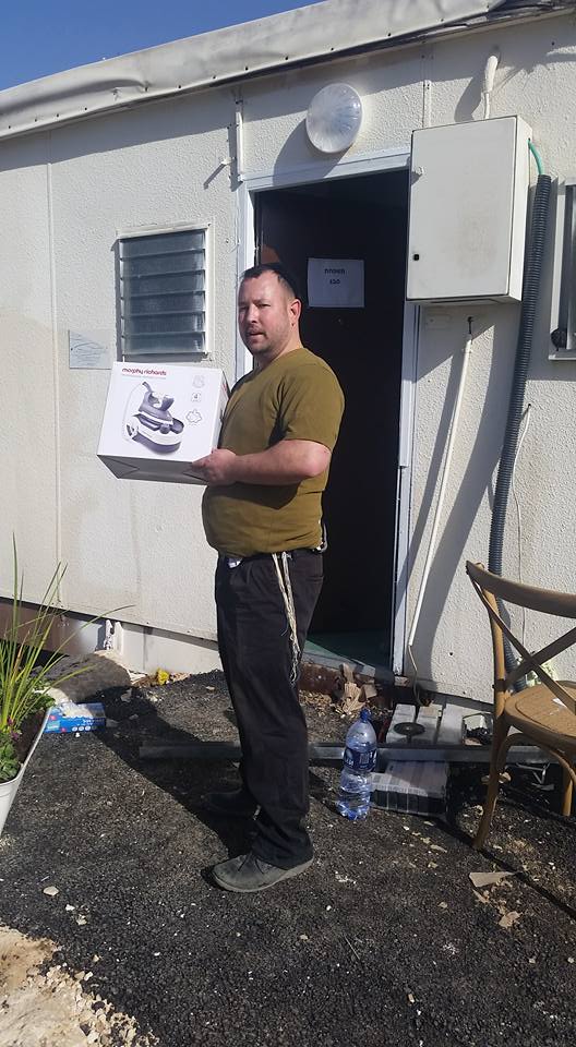 We moved furniture, appliances, and other household goods into new caravans for those who lost their houses to terrorist arson in Neve Tzuf.