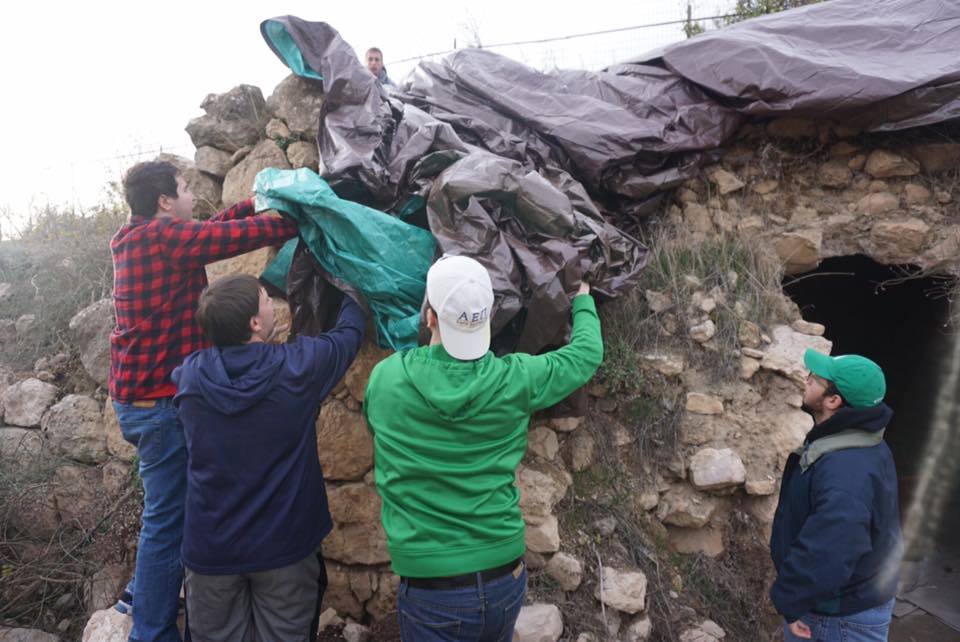 INCREDIBLE ACCOMPLISHMENT with AEPi yesterday in Hevron – winterized the Ancient Synagogue to keep out rain and snow! Total game-changer! Followed by a celebratory meal at the Gush Etzion Winery יקבי גוש עציון! AMAZING DAY!!!