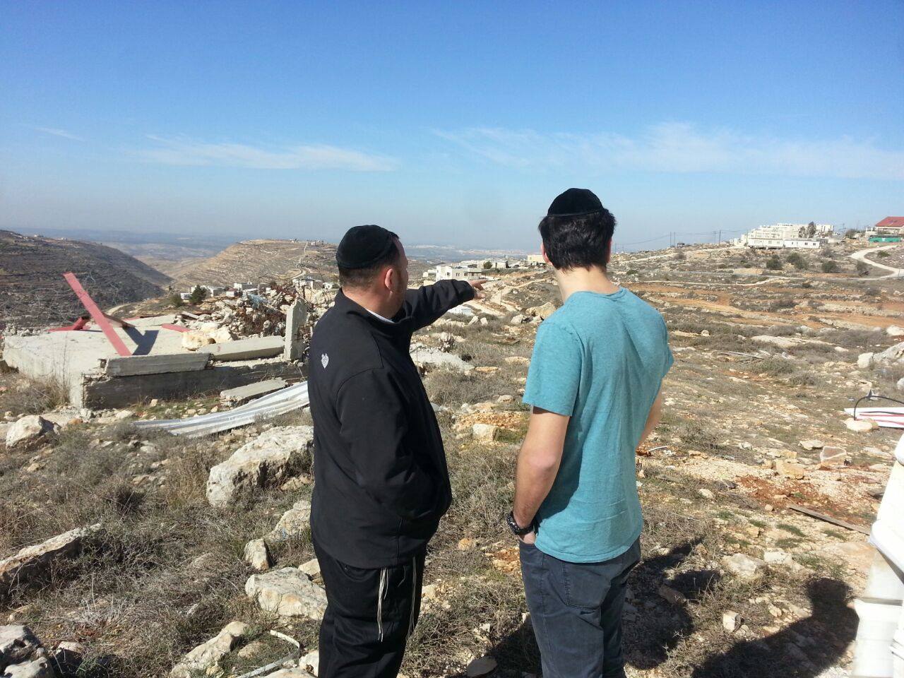 Outside of the Jewish Community of Karmei Tzur, overlooking the site where the three kidnapped boys were buried by the arab terrorists that killed them. Site still remains undeveloped, hopefully that will change soon! The Jewish books we donated, after the arabs burned all of the books that were there, are still in use!